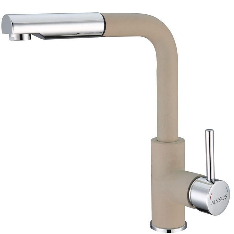 Bateria Alveus Siros este o baterie pentru chiuvetele de bucatarie cu actionare tip monocomanda, pipa inalta si rotativa plus un cap extractibil. Are cartus ceramic si sistem de montaj rapid Easy Fix.