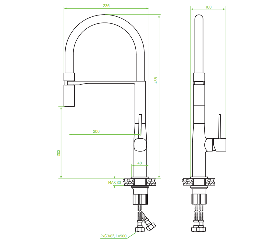 - Lungimea furtunurilor de conectare: 500 mm