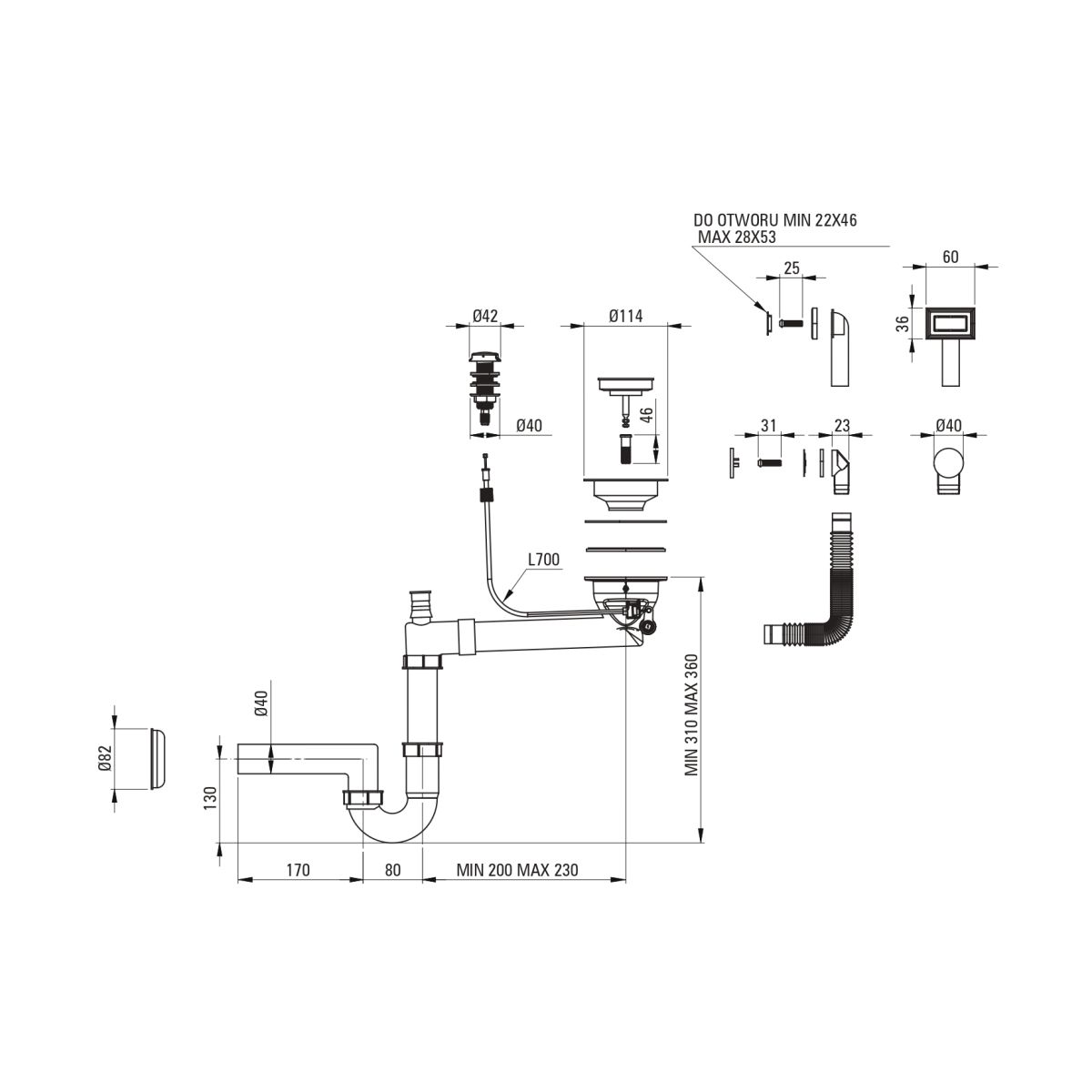 - Chiuvetă reversibilă – posibilitate de instalare a cuvei pe partea stângă sau pe partea dreaptă