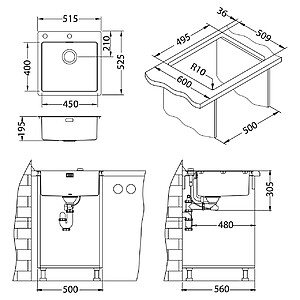- Dimensiune cuva: 450x400x195 mm