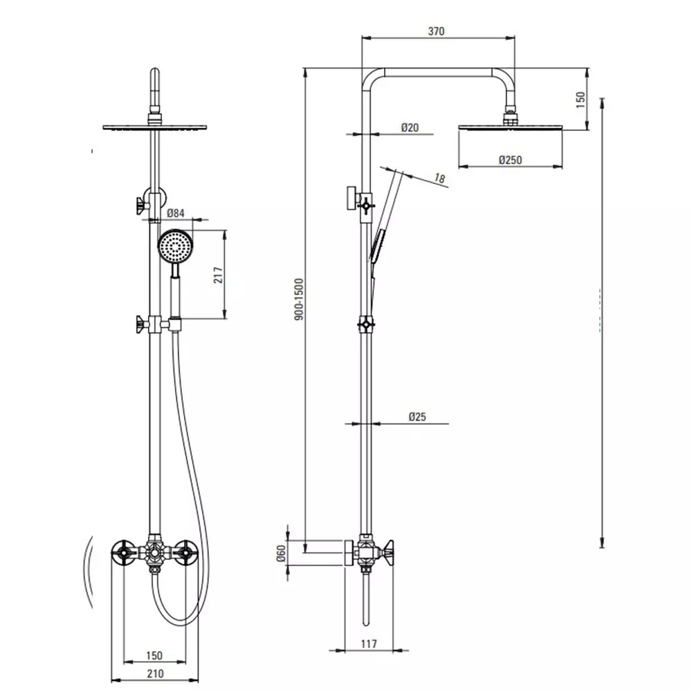 - Diametru cap de dus: 25 cm